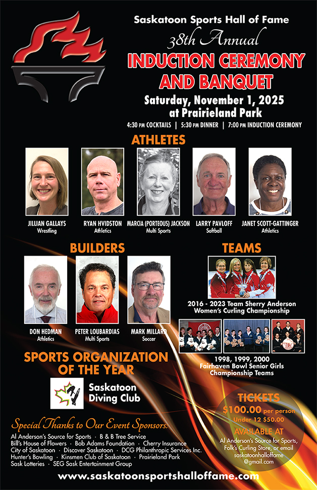 We are talking about 400-plus athletes, builders, teams and organizations that have been inducted into the Saskatoon Sports Hall of Fame dating back to its inception in 1986. Feel free to search through the Hall's web page as it contains a fount of knowledge about sporting excellence in Saskatoon.